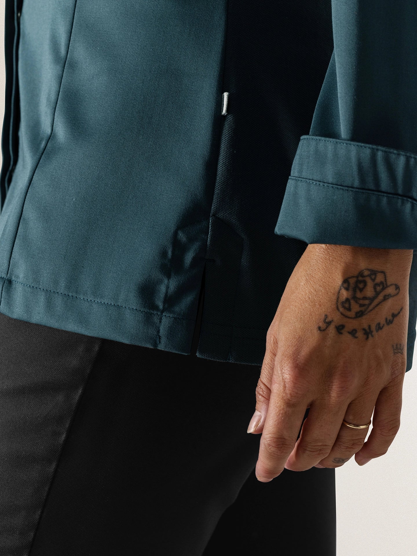 We source high-performance materials, such as recycled fibres and organic cotton. Designed for heavy use, our fabrics are carefully selected for their proven ability to withstand frequent washing and the high temperatures of professional kitchen environments. To extend the lifespan of the garments and reduce the frequency of replacement, we recommend following the care instructions we provide.