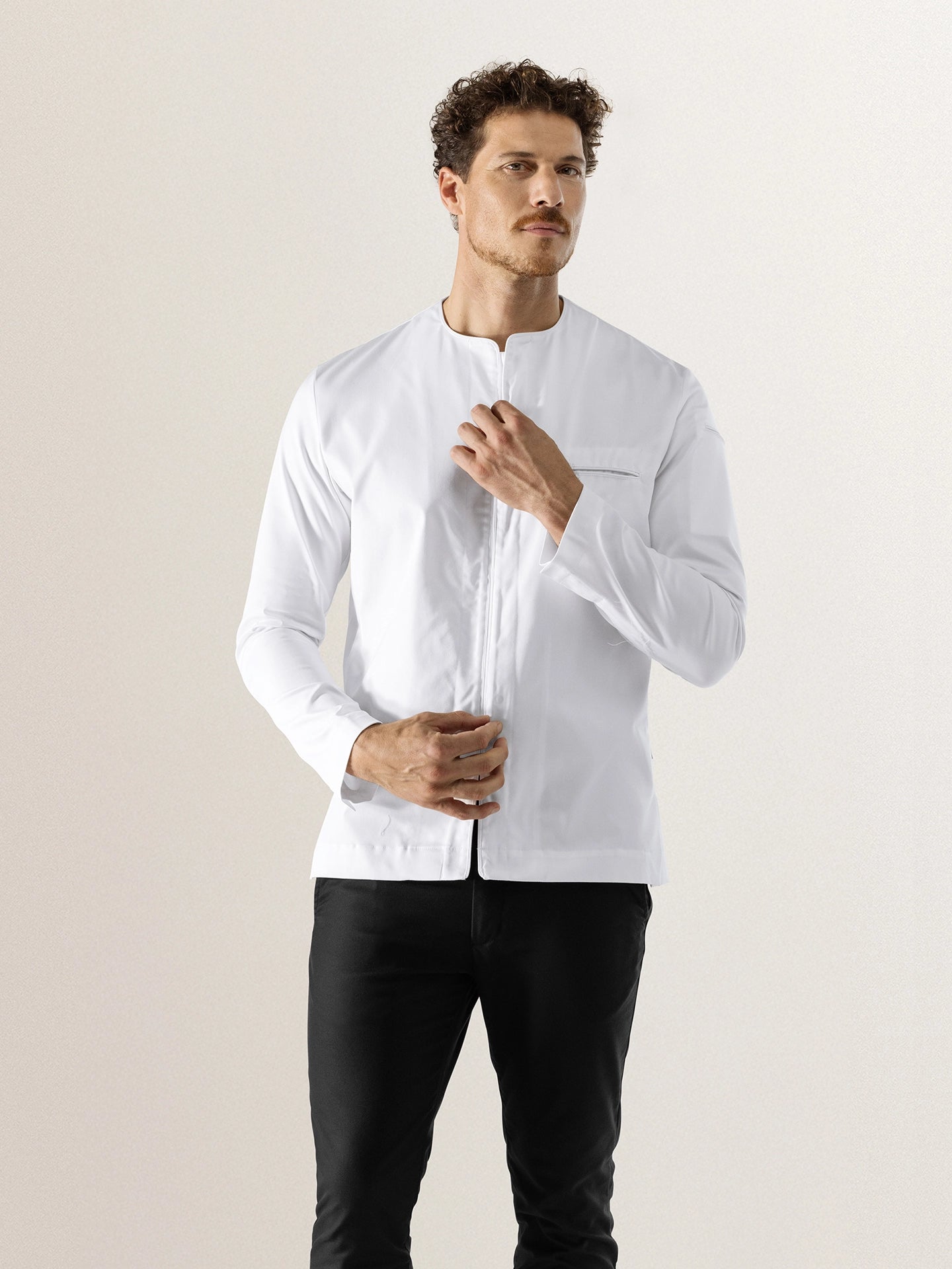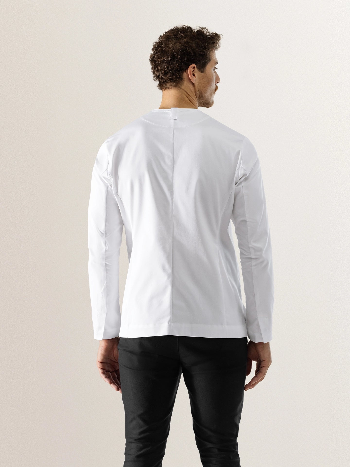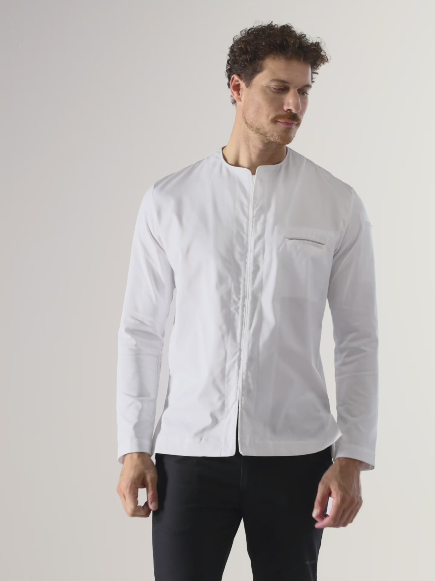 | Product features | Apron add-on with press stud Breast pocket and pen pocket on sleeve Embroidered Le Nouveau Chef H on sleeve Extra thin studs (for easy ironing) Finished with luxurious piping Round collar |