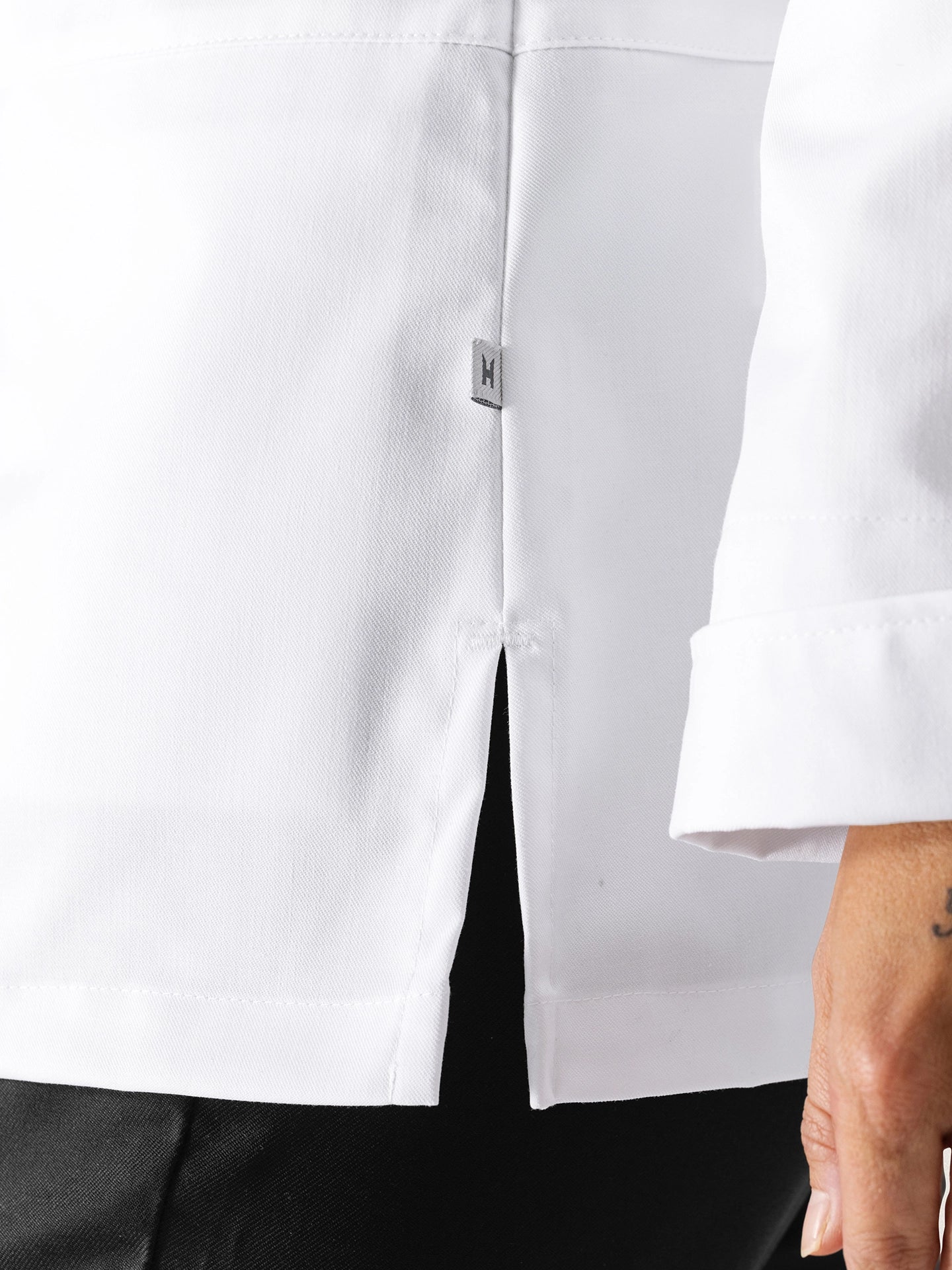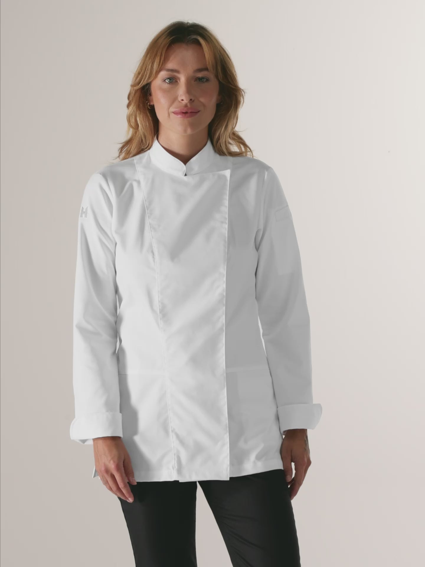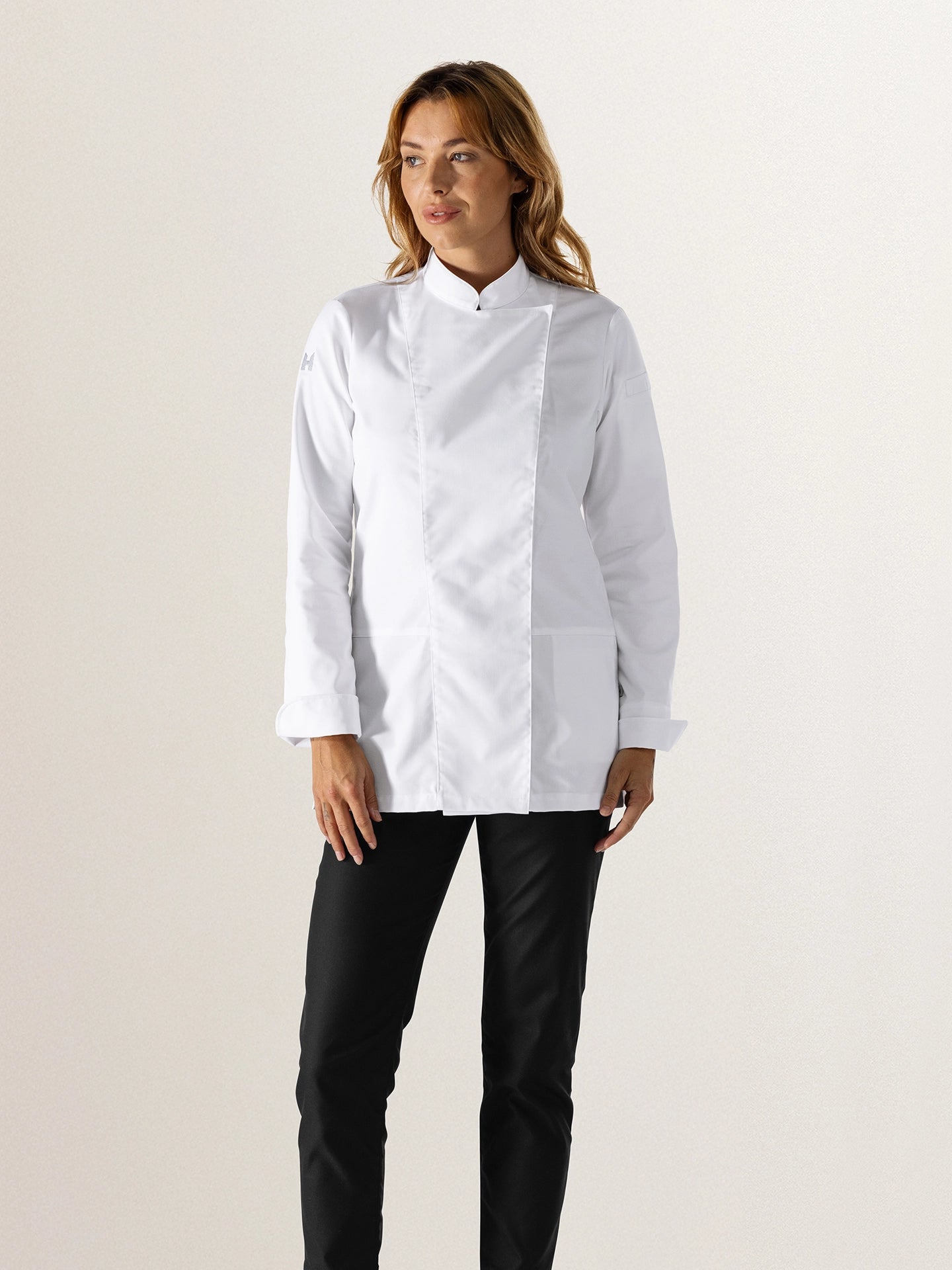 | Product features | Apron add-on with press stud Embroidered Le Nouveau Chef H on sleeve Hidden pocket and pocket on the sleeve High stand collar Invisible press studs Longsleeve |
